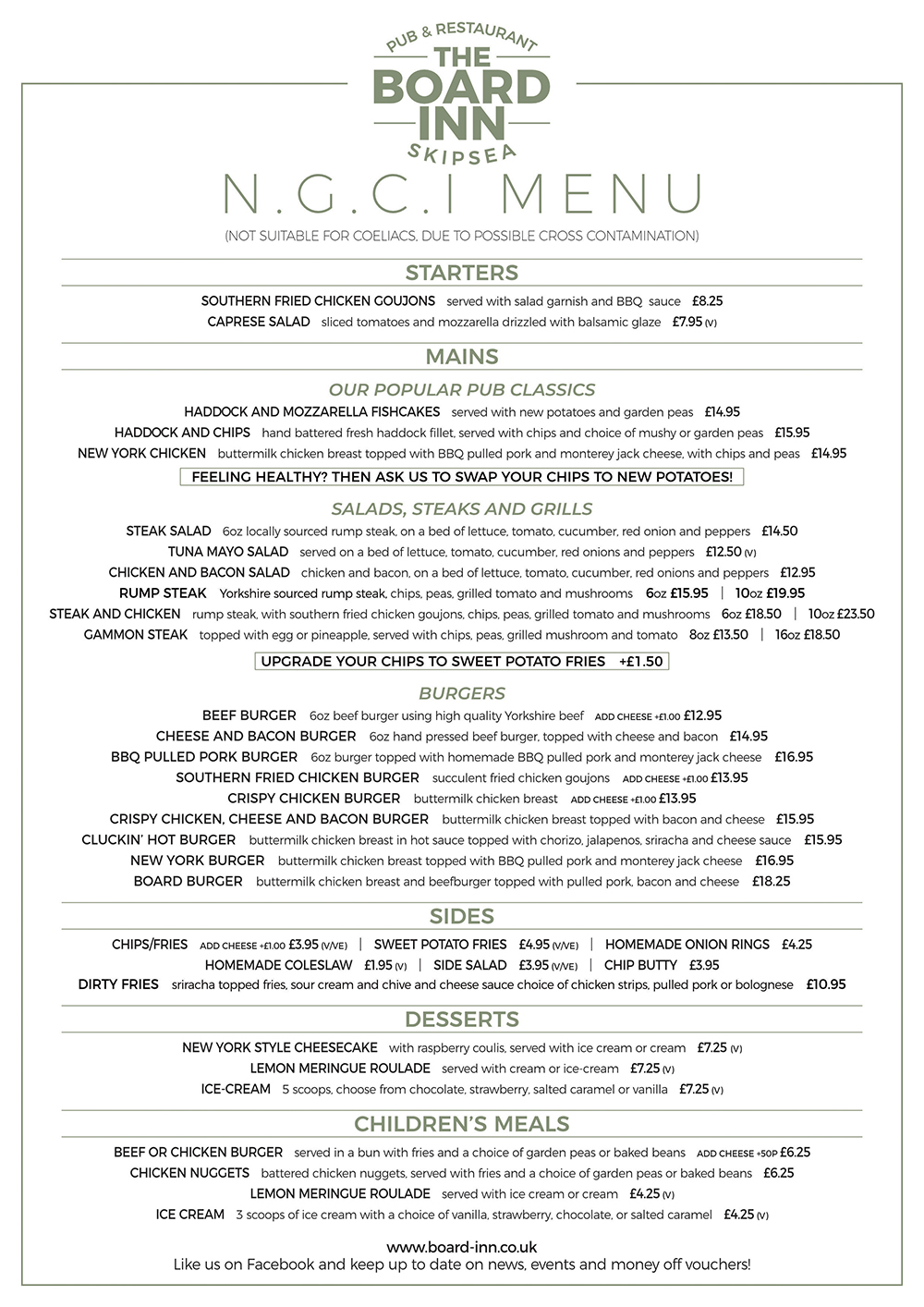 We have a range of special dietary dishes available. Download the menu here, or view below. Please contact us if you require any further information or have other dietary needs.
